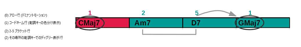 (2) その場所の転調キーでのディグリー表示行